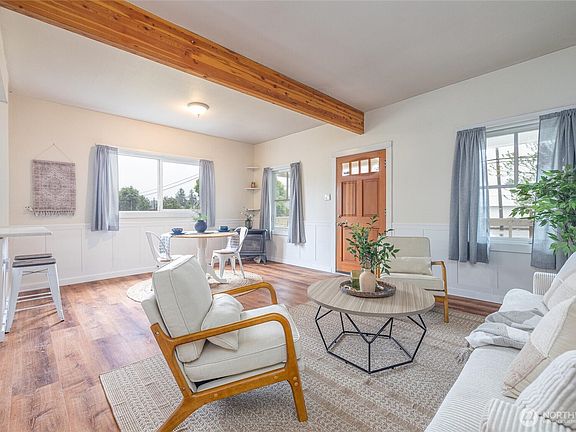 Affordable remodeled 3 bd home on over .4 acre parcel in heart of Sumas. Close to town park w/splash pad, restaurants and shopping. Brand new exterior paint, newer roof, fully fenced huge yard & private driveway. Semi-attached garage w/extra shop space & power. Inviting covered front porch welcomes you into charming turn of the century open living space with LVP flooring, cozy gas fireplace & extra tall ceilings w/exposed beam. Updated kitchen w/tons of cabinets, quartz counters and gas stove. 2 bdrms on main floor + full bath & sunny spacious utility space. Upstairs features large open family room & 3rd extra large bdrm. Move-in ready, would make great starter or investment home!