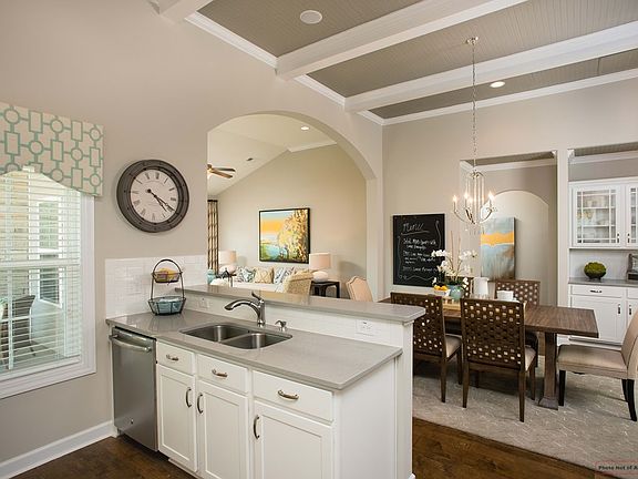 This Hartford is a three bedroom, three-and-one-half bath plan with two master bedrooms on the main level and the third bedroom and full bath upstairs. Curb appeal is enhanced with stone accents and a pergola over the garage doors. A vaulted entry foyer leads to the gourmet kitchen and dining area with a 12' flat ceiling and crown molding trimmed beams. The family room with fireplace opens to a large covered porch. Both master bedrooms have private alcoves with linen closets and double vanities and the primary master has a huge 5' x 5' tile shower. Random width hand-scraped hardwood flooring is included in public living areas with ceramic tile flooring in all full bathrooms and the laundry room. There are many decorator touches throughout including under-cabinet lights, white full overlay kitchen cabinets, and upgraded carpet in the bedrooms. An outdoor fireplace and large patio overlooking a wooded common area are also included. MLS# 465831