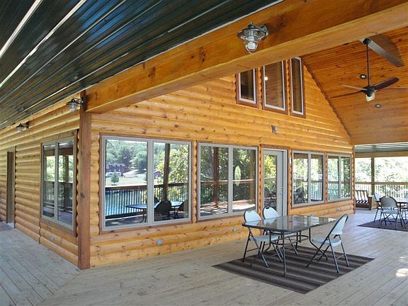 Unique location. Lake front on one side and city park across street. Brand new 2200 sq. ft. living area and 2100 sq ft deck covered by metal roof. Ample covered concrete parking for 2 large motorhomes with full hookups, including sewer. Level walk to private boat dock. Extra large open floor plan w/full wall of windows offering lake views. Numerous quality upgrades include granite countertops, stainless steel appliances,unique tile flooring, 2 bedrooms on main level with each having full bath highlited by large walkin shower with double head showers. Sleeping loft accomodates up to 12 people. Home includes all furnishings, decor, washer/dryer, fully equipped kitchen & all linens. Owner would consider a smaller home in trade, perhaps even a nice motorhome or a classic car. PRICE REDUCED TO $429,900.