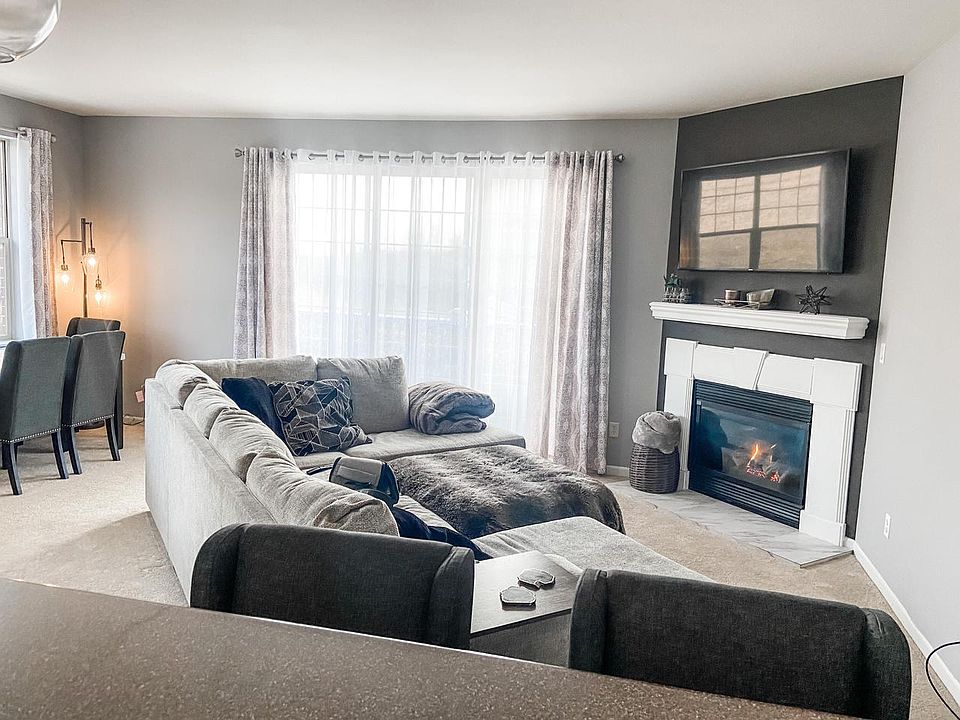 This condo will not be on the market long!! It is updated and is exactly what you have been waiting for with many extras. Townhouse style condo with a great layout you will love! Desirable end unit with lots of windows, gas fireplace, vaulted ceilings, balcony. You will love the updated white cabinetry in the Kitchen, SS appliances, wall pantry, and a peninsula island. The MBR with full bath en-suite, walk in closet, private views and sitting area. Second floor washer/dryer. Plenty of storage space. Updates include: LVP flooring in Kitchen, New carpeting GR, stairs and hall, Full interior and garage painted, new water softener, paddle light switches, new lights, powder room toilet and mirror, water heater, A/C, google home heating/cooling remote control from phone. pool, walking paths
