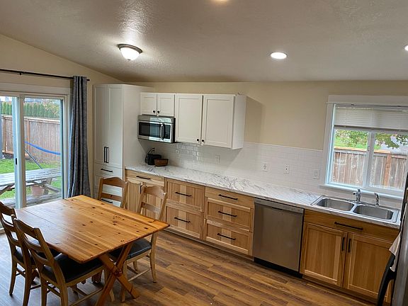 3 bed 2 bath corner house on quiet street in the Clover Ridge area. Short walking distance to meadow ridge and timber ridge schools. Central AC, newly remodeled open kitchen with custom cabinets and lots of storage, luxury vinyl plank flooring throughout house. Good sized fenced yard with patio. Built in entertainment center in living room, laundry room, walk in closet and bath in primary bedroom. 220v outlet in 2 car garage is electric vehicle charger ready. Easy access to I-5. Washer and dryer hookups. Renter is responsible for utilities and yard maintenance. 12 month lease. No smoking, no pets. Official listing is on Craigslist by Barb's Property Management, LLC 555 S. Main St. Lebanon, OR 97355 Call or visit Michelle Daniels Property Manager Licensed in OR since 2019 License #201232849