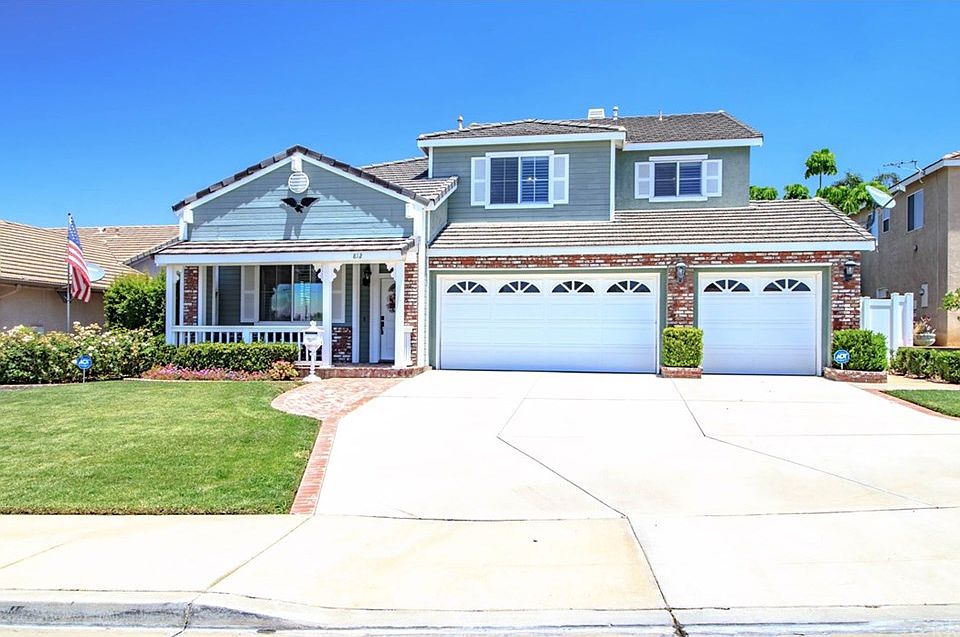 This spectacular Mission Grove Community home is located on a private cul-de-sac and a great opportunity to live in a quiet well-established neighborhood. This 2,676 sq. ft. 4 bed, 3 full baths + loft home has been well cared for and it shows. This open floor plan coupled with high ceilings, a spacious living room space and tons of natural lighting also includes the popular downstairs bed and bath design. The elegant gourmet kitchen features a large granite breakfast bar, built-in appliances, and extra cabinetry. The kitchen opens up to the family room with custom brick fireplace that becomes an instant focal point. Upstairs off the large loft area, you'll fall in love with the large master bed and bath featuring a walk-in closet, wainscoting and the super large custom tiled shower and tub. The remaining two large bedrooms are very well-appointed with lighted ceiling fans, while the bathrooms have upgraded dual countertops, laminate flooring & new cabinetry. There are so many benefits that come with owning this home including Anderson wood flooring downstairs, crown molding, ambient recessed lighting, and plantation shutters to name a few. The custom brick patio in front really sets off the charm of this home. The backyard is spacious and a pure delight with an Alumawood covered patio, 2 work sheds, 4 trees including a lemon, and a dog run. This beauty is centrally located and in close proximity to freeways, hospitals, schools, shopping, restaurants, and grocery stores.