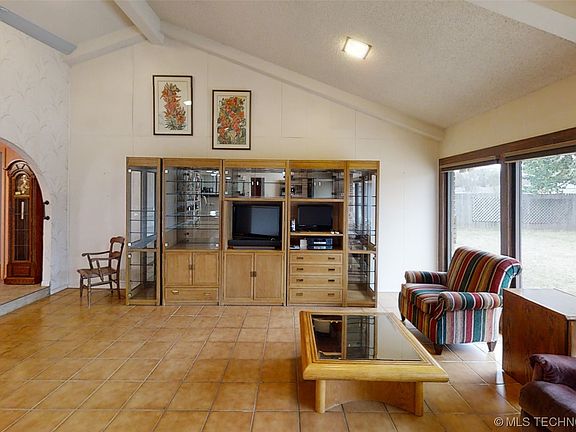 This well maintained and spacious home is located on .34 of an acre in the lovely southwest part of Ardmore. Beautiful treelined street on a quiet cul-da-sack of well maintained homes. The front yard is landscaped, with a beautiful oak tree, surrounded by stone, and plants lead to a gated courtyard, which offers both privacy and a fountain for your listening enjoyment. The main entry leads to a foyer which leads into the large living room and dining room with vaulted ceiling, ceiling fans, a beautiful fireplace, wet bar, and a wall of windows with sliding glass doors to an expansive backyard. The window shades all across the living room and dining room are controlled via remote control, adding both privacy, and an opportunity to control the room lighting.