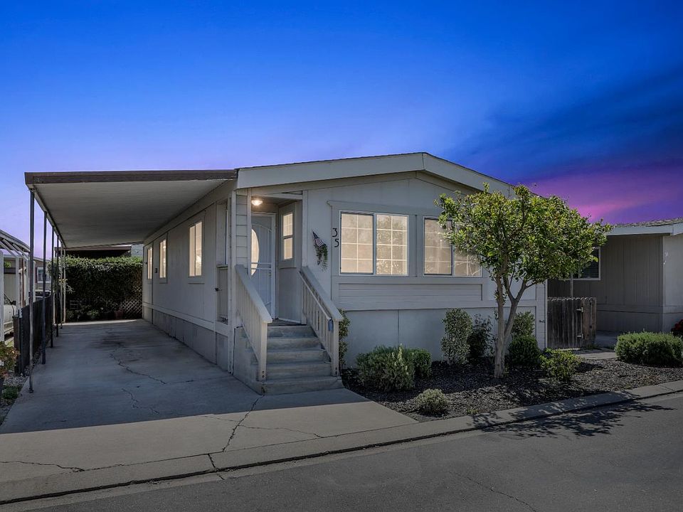 Welcome home to your comfortable and conveniently located move-in ready manufactured home in Orchard Estates. This well-kept home features open concept kitchen and living area, engineered wood flooring, fresh interior paint and garden tub in the primary bedroom. Outside you will enjoy low yard maintenance and covered parking. Location offers a well-maintained family friendly neighborhood, great facilities including pool, within walking distance to shopping, dining and easy access to freeway for commuting. Welcome to your new home in Orchard Estates.