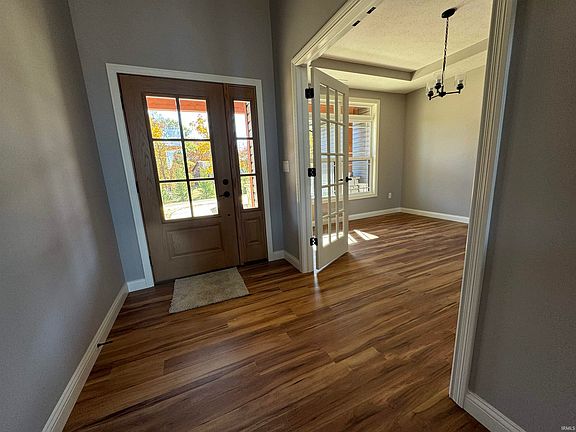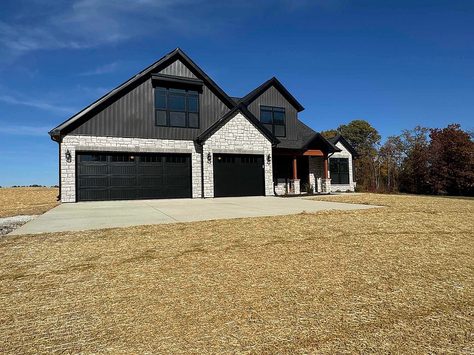 SOLD........Custom built brand new 2 story home in beautiful Hidden Hills SD up on a hill with view of pond and fountain on 2 lots in Miami Co. This home offers a stunning stone and board and batten siding with black windows for a beautiful exterior. This home offers 3 bedrooms, 2 1/2 baths with large Bonus Room upstairs. Upon Entering large foyer there is a dining room on your left with double French doors, Large great room with two story ceiling and large fireplace with stone front and barn beam mantle. Large custom kitchen and dining nook with buffet cabinets. Fully applianced kitchen with built in over and cooktop Laundry room with lockers. Double pantry. Bedroom offers tray ceiling, double vanities, tiled shower and huge walk-in closets. Upstairs offers two bedrooms full bath and large bonus room with storage. Three car attached garage with garage service door. 10 by 12 covered porch with patio.