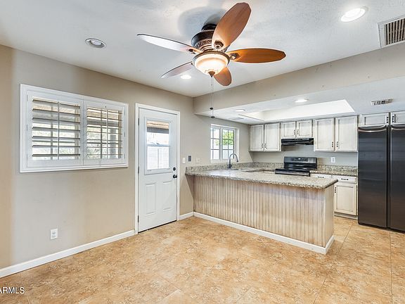 OFFERING $10,000 IN CONCESSIONS FOR CARPET AND PAINT!!! Welcome to this inviting 4-bedroom, 2-bathroom home located on a spacious cul-de-sac lot in a tranquil neighborhood with no HOA! This residence features a den, family room, and great room, with vaulted ceilings and dual-pane windows throughout. Enjoy cozy evenings by the fireplace in the family room. The kitchen boasts a walk-in pantry and granite countertops, and includes a breakfast bar and breakfast room for casual dining. Step outside to a covered patio overlooking a vast, low-maintenance yard with endless potential, complete with an RV gate. This home is in a fantastic location, close to numerous restaurants and shopping options, with easy access to anywhere in the Valley!