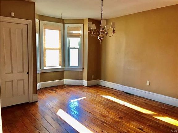 MULTIPLE OFFERS RECEIVED. HIGHEST AND BEEST BY THURSDAY 1PM. Looking for a detached 4 bedroom home in South Side Easton with a large yard and off street parking, well here it is. Offering a welcoming covered front porch, large living room and dining room with ceiling fans, pocket doors and hardwood floors (living room is currently carpeted but there is hardwood underneath). A nice sized modern kitchen, half bathroom and laundry. On the second floor are 3 spacious bedrooms all with ceiling fans and a large full bathroom with stall shower. The third floor is finished with a 4th bedroom playroom. At the rear of the home is a 3 car parking pad. The large back yard is fully fenced in. Home has economical gas heat and central air. Quick settlement possible. Located just minutes from I78, NJ border, shopping, public transportation and downtown Easton.