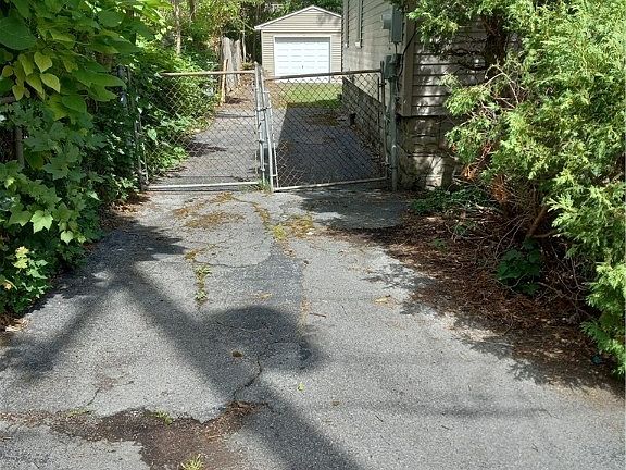 Vinyl siding with freshly painted open front porch, property located next to city park. Living room with wood floor under carpet. Spacious dining room, gally type kitchen with refrigerator. electric stove / oven, plus laundry with washer and dryer ( condition of appliances unknow / as is. ) One bedroom and one bath with tub. Back room for storage and full basement. Single car garage, long, gated, partially paved blacktop drive able to fit multiple vehicles for off street parking. Fenced lot and spacious rear yard.