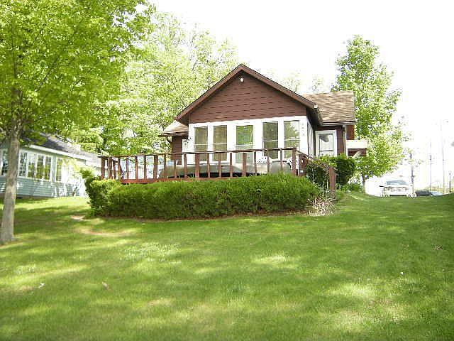 Fully furnished cozy little bungalow with 51' of sandy beach frontage. Superb fishing, and the large lot allows for great gatherings, or you may want to add additional living space. Furnace new in 2000, wood flooring and a nice deck over looking the lake that makes a fabulous spot for dining and enjoying your summer. Great neighborhood with friendly people.