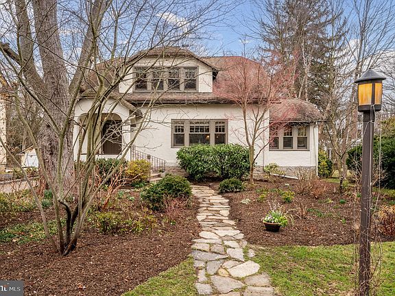 This lovingly restored Arts & Crafts classic in Swarthmore village has been treasured and improved by a family of artisans, including the owner, renowned local cabinet-maker John Kennedy whose charming built-ins adorn nearly every room. A curved stone walkway leads to the picturesque covered front porch. Step inside and allow the entrance hall to transport you to a peaceful space with warm hardwood floors and plentiful windows allowing the sunlight in. To the right, the light-filled living room boasts a wood-burning fireplace flanked by custom built-ins. A cozy family room flows from the living room, offering more built-ins as well as beautiful views over the lawn. To the left the generous dining room offers more built-ins and four large windows overlooking the private side yard. The spacious custom kitchen boasts stainless steel appliances, Mercer tiles, an island, and a large eating area with sliders to a deck with pergola draped with wisteria and steps to the rear yard. A built-in desk, perfect for homework or cookbooks can also be found in the kitchen. A hall from the kitchen leads to a coat closet and a mudroom with a rear door and deck to the garage and rear yard. This hallway also has a separate laundry room with a pantry closet. The primary suite can be found on the second floor, and boasts an en-suite bath and walk-in closet. Three additional bedrooms and a hall bath complete this floor. There is a studio/office in the basement that has daylight windows and a separate entrance. Unique curved roof lines and perennial gardens adorn this lovely home and add intrigue to the exterior character. Tree-lined Westdale Avenue provides a peaceful setting, just blocks from the village, college campus, train station and shops as well as several parks and playgrounds. Downtown Philadelphia is thirty minutes away by car or residential rail. Philadelphia International Airport is just twenty minutes away by car. Served by sought-after Wallingford-Swarthmore schools, 812 Westdale offers an abundance of charm, as well as all the comfort and convenience needed for working, studying, relaxing and entertaining at home.