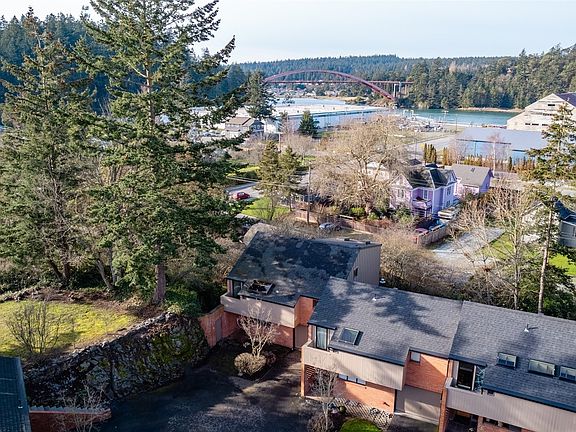 Location x3. Private. Hip. Say hello to this must-see condo in the highly-desired Rockside condominium community! Built in 1979, this end unit beams 70's inspired ambience with modern flair. A combination that was, and in its own eclectic way, still ahead of its time. Featuring 2 second-level bedrooms, 1.5 baths (main level half bath), soaring ceilings, living room with a gas fireplace, comfortably-sized kitchen, main floor office/flex space, upstairs laundry, window seats, an uber-enchanting (private) pocket garden, deck and patio area, a single car garage, peekaboo views of the iconic Rainbow Bridge. Walkable to all charmed things that make historic La Conner vibrant: shops, restaurants, the channel & boardwalk, Pioneer Park.
