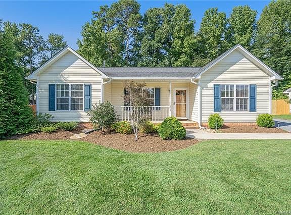 Adorable 1 story living that offers the ease of country living but still minutes from it all! With quick access to 485 & 74, the commute uptown is a breeze. Want to head east? Hop on the new Bypass and be at the beach in record time! You will immediately be drawn to this quiet cul-de-sac street and the curb appeal of the bright house featuring a well landscaped yard, & front porch meant for rockin'. Come on in and enjoy the open floor plan, allowing for tons of natural light and airy feel! Fall is just around the corner so picture yourself, cozy on the couch, reading, with the fireplace blazing in the background. Kitchen offers plenty of counterspace for meal prep and dine-in area! Split bedroom plan allows for a private owner's suite and two additional ample sized bedrooms. The backyard is perfect for entertaining with a large patio meant for grilling, gorgeous mature landscaping, and plenty of privacy. Detached 2 car garage rounds out the tour, great parking or storage space!