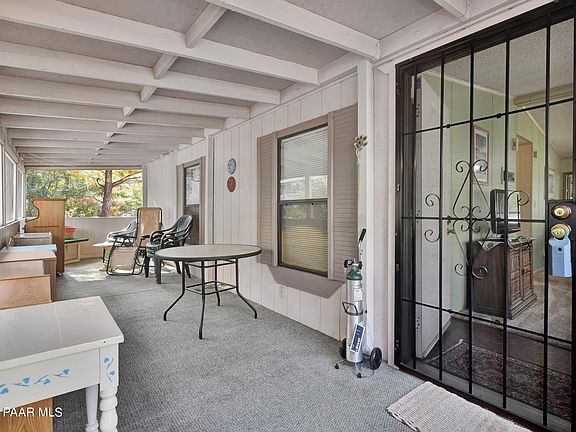 Back on Market! Creekside home in Prescott Canyon Estates, a 55+ community w/great amenities. Living Room with vaulted ceilings. The kitchen is the perfect size with a breakfast bar and adjoining dining area. Primary bedroom with private ensuite bathroom and walk-in closet. Relax and enjoy the surrounding nature, including seasonal creek behind the home, from the large covered and screened porch. Storage shed in carport. Home is being sold with all appliances and furnished, including the kitchen, so it's move-in ready as a primary or secondary home. Half of roof replaced in 2023. Located close to shopping, restaurants, medical services, lakes, and hiking trails. Amenities include a clubhouse, pool & spa, tennis & shuffleboard courts, and exercise room. Don't let this one slip away.