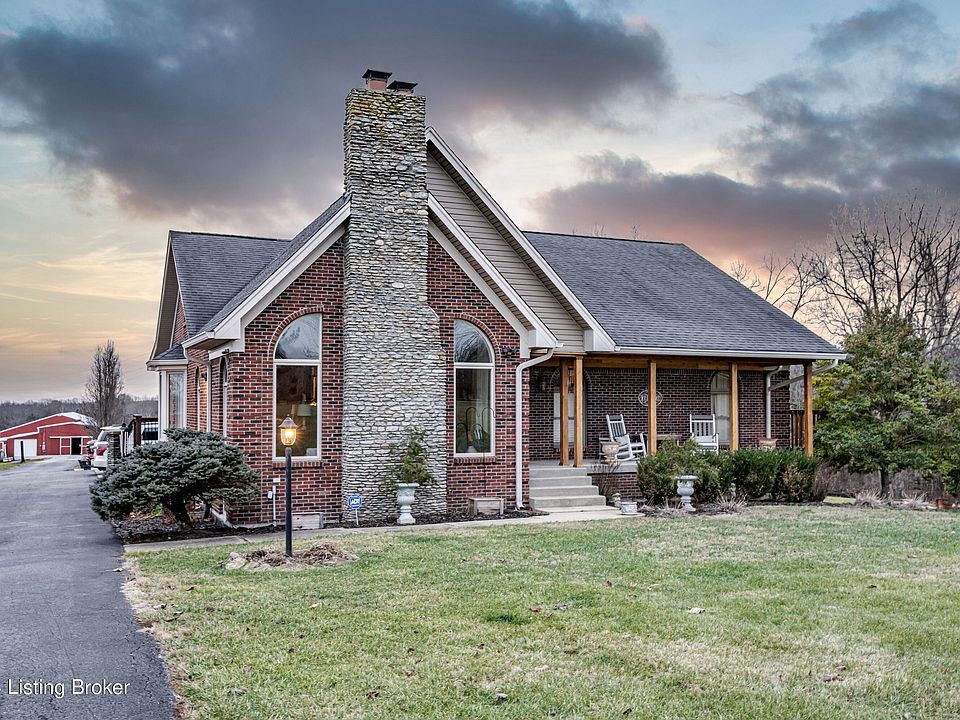 EQUESTRIAN & ENTERTAINER'S DREAM PROPERTY! GRANDLY perched among rolling land & trees this 22.84 acre horse farm, located 20 min from Churchill Downs & 50 min from Keeneland, is a prime purchase! This property features a gorgeous ranch style home with 3 car garage, heated inground pool, & a show stopping horse barn with 60x160 indoor riding arena surrounded by gently rolling pastures. HOME DETAILS: This charming 3 BR, 3 BA with finished walkout basement has fabulous updates & is perfect for entertaining with a fluently flowing floorplan. The soaring great room with creek stone fireplace is open to the dining area & updated Chef's kitchen. This envious kitchen has a Thermador dual fuel stove with double oven & griddle, a convection oven/ microwave, easy load elevated dishwasher, & an oversized Thermador refrigerator. There is a large pantry, loads of cabinet space, granite counters, & island. The primary suite located on the main level has a hip vault ceiling, private deck access, & large walk-in closet. The primary bath is your own personal spa with a jetted soaker tub, heated floors, & amazing walk in shower. The custom tiled shower has luxurious heated floors, heated seating, & heated walls, with numerous shower heads to pamper you from every angle. From the Primary bath there is also easy access to the laundry/mud room area that includes a dog washing station. Downstairs in the walkout basement you will find the 3rd bedroom with attached bathroom & walk-in closet. There is also a spacious family room, home theater with fireplace, bonus room with mini bar, & a concrete storm shelter/storage area that would be perfect for a wine cellar. Back to the main level, there is spiral staircase that leads to a loft with a sitting/office area with plenty of natural light & great views of the property. There is also a very large bonus room with great closet space that is perfect for a play area or teen hideaway. From this room there is access to vast walk-in storage space above the garage. The 3 car garage has plenty of space with an additional storage area plus a HEATED & AIR CONDITIONED dog kennel! Home has a security system with cameras & outdoor sound system for the deck, garage, & pool area. POOL DETAILS:Enjoy long summer days in this beautifully landscaped oasis! The heated salt water fiberglass pool has a swimming lap lane, deck jets, led lighting, tanning ledge, & turbo twister slide. The pergola offers shade with a large pool deck area to host great parties with plenty of seating & a fire pit. BARN DETAILS: Attention equestrians, here is your dream barn! This barn has all of your needs under roof, making winter chores no problem. There are 9 interior stalls, feed room, tack room, water hydrants, security cameras, sound system, & an amazing indoor 60x120 riding arena with a perfect sand floor for training year round. The indoor hay loft holds up to 900 bales! In addition to all of the indoor amenities the exterior features 2 individual tack areas, 4 stalls, 2 run-ins attached to barn, freeze proof water hydrants, & automatic waterer. There is another storage shed & lush fenced pastures. ADDITIONAL DETAILS: The gated entrance has new 4 board fencing leading you into breath taking views of the 22.84 acre property. There is plenty of privacy within a short drive to town. The home uses city water but there are 2 cisterns on the property that could be accessed, plus it is wired for a back up generator. At the back of the property you find an area that is safely used for a gun range, riding trails through the trees, & abundant wildlife. THIS PROPERTY IS A RARE FIND & A MUST SEE, WITH SO MANY MORE GREAT FEATURES, CALL FOR AN APPOINTMENT TO VIEW!