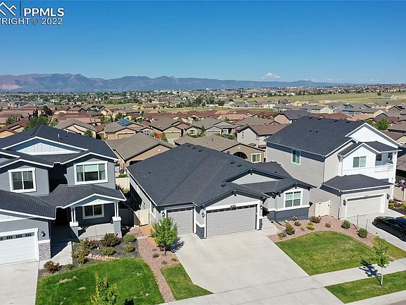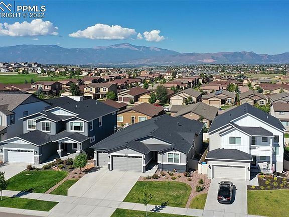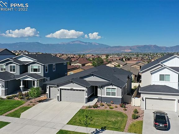 TONS of extra features added to this Ellingwood model, one of the biggest models Keller Homes/Toll Brothers builds, with spectacular views of Pikes Peak and the foothills. Close to St Francis Hospital and the popular Powers corridor. LOW HOA fees. Special features include: 8' tall Garage with 2 extra feet-can fit a large pick up truck, also with separate garage door openers for the 2 garage doors~Storm Door on Front door~Utility sink in laundry room~Large kitchen pantry with wood shelves, not wire~42" maple kitchen cabinets with soft close~Touch sensor Moen kitchen faucet over single basin deep sink~Pull out trash/recycle cabinet in kitchen~Quartz counter tops throughout home~Cabinet fronts on island~Hickory hardwood floors on main level~Curbless walk-in shower in Master bath~Hidden Safe in master walk-in closet~Covered deck with fan and stairs down to enclosed dog run~Mechanical sun shade to block the afternoon sun on deck~Tons of storage in the storage room and mechanical room~Large entertainment area in basement great for a pool table and dart room~Special spot lighting in work out room in basement~Walk Out slider to extended concrete patio~2 basement bedrooms, 1 with a Walk-in Closet~Dual Sinks in the basement bathroom~75 gallon hot water heater~Rough in bathroom in mechanical room~Fully landscaped with auto sprinklers and full vinyl fence around back yard~Radon system installed