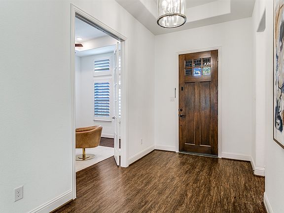 Welcome to a truly stunning one-story ranch in the coveted Waterford Point Village of the Tribute Lakeside Resort & Golf Community—where refined design meets lakeside luxury. This thoughtfully designed residence offers 3 spacious bedrooms with 2 ensuite baths, a dedicated home office with French doors, and a versatile sunroom perfect for today’s lifestyle. Step inside and be greeted by soaring ceilings, rich wood-look luxury vinyl floors and considerate upgrades such as plantation shutters and a whole-house water filtration system. The open-concept design seamlessly blends living, dining, and entertaining in grand style. The living room’s elegant stone fireplace creates a warm and inviting focal point, while the chef-inspired kitchen boasts crisp white cabinetry, quartz countertops, an upgraded backsplash, farmhouse sink, and premium appliances. The primary suite is a private sanctuary, complete with a serene sitting area overlooking the lush pollinator’s garden. Its spa-inspired ensuite bath features an oversized walk-in shower, expansive vanity space, and an enormous closet with direct access to the laundry room. Two well-placed secondary bedrooms provide comfort and privacy for family or guests. Outside, unwind on the oversized covered patio, a perfect spot to savor peaceful evenings surrounded by vibrant blooms and fluttering butterflies. Living here means indulging in the exclusive amenities of Waterford Point—including an infinity-edge lakeside pool, private clubhouse with fitness center and lounge—while also enjoying the full lifestyle of The Tribute: resort-style pools, scenic shoreline trails, world-class golf, and year-round community events. Nestled on a breathtaking peninsula along Lake Lewisville, with convenient access to upscale dining and shopping, this home offers not just a residence—but a lifestyle of elegance, leisure, and distinction.