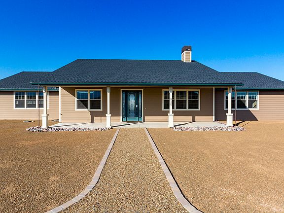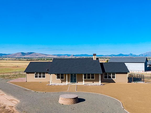 Country Dream Home! Completed in 2017, situated on a Flat & Gently Sloped 2 Acre PANORAMIC View lot of Granite Mountain, Mingus Mountains, Prescott National Forest and City Lights. The spacious floor plan design is Light and Bright with Custom Two-Tone Paint, Beautiful tile flooring throughout main living areas, Craftsman Style Wood Accent Trim around Windows & Doors and Crown Molding. Boasting 3 Bedrooms, 2 Full Baths, Spacious Great Room, Dining Room, Gourmet Kitchen, Inside Laundry Room and 3-car Garage. The Lot is completely Fenced with an Automatic 20' Sliding Gate, 4' Swing Walk-Up Gate, Keypad and Solar Gate Opener. The Exterior has Gravel Circular Driveway,
