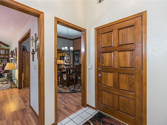 Beautiful quality built home! Stunning entry area opens into one spacious living with vaulted beamed ceiling, brick fireplace with built-ins and wood look flooring. Kitchen has quartz counter tops with travertine backsplash, all stainless appliances including double ovens, accent lighting, and pantry plus center island that seats two. Eating area with crown molding. Master Suite has a loft room with a wood spiral staircase, the bath has been updated with quartz vanity, separate tub and shower. Travertine flooring in both baths. Back yard oasis with cutting flower garden, including many, many perennial plants. Wood deck off family room. Short walk to neighborhood pool and playground.