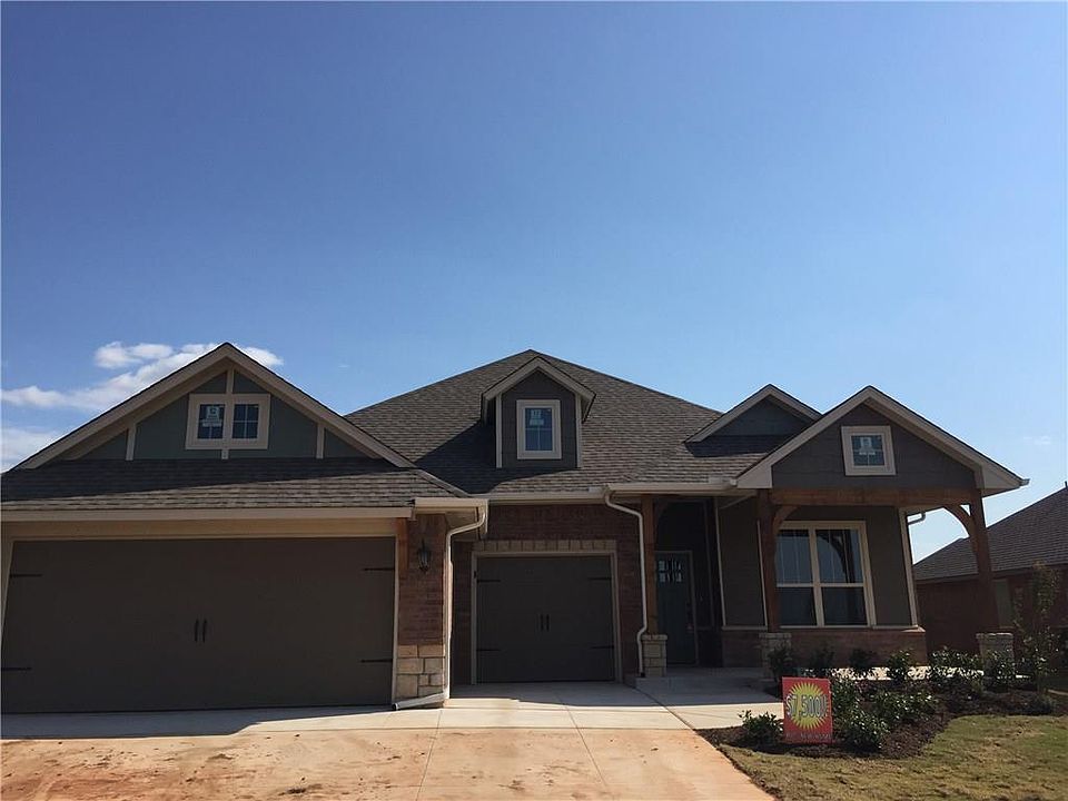 The Mallory floor plan has 2000 SQFT of open living space that comes with 3 bedrooms,optional fourth bedroom or study, 2 full bathrooms and a 3 car garage with storm shelter installed as a standard. Fully sodded property with in ground sprinkler system and landscaped front yard including flower beds. Covered back patio is great for entertaining friends or a relaxing dinner. Whole house has custom cabinetry and granite counter tops throughout! All bedrooms have ceiling fans! Upgraded stainless steel appliances that include a built in gas range, electric oven, over the range microwave and dishwasher installed in the island. Upgraded lighting and hardware throughout house. Stacked stone surround gas fireplace in living room with large windows on either side for natural light. Master suite includes a Jetta Whirlpool tub, double sink vanity and spacious walk in closet. This home has a Rinnai Tankless water heater, as well as a whole home air purification system & fresh air ventilation!
