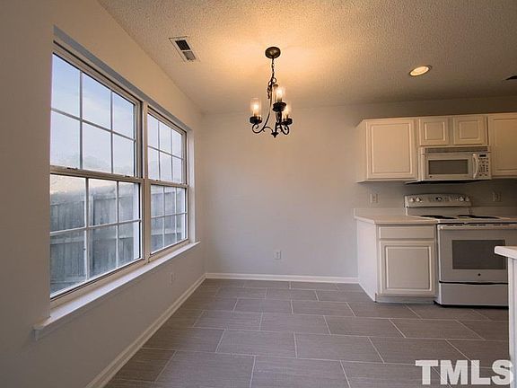 Charming 3 BR 2 1/2 BA Home with a 2 garage in desirable zip and neighborhood. Patio and private fenced in yard. Spacious Master with 2 walk in closets. Bedrooms 2 & 3 are spacious too! Awesome location, its within mins of I540 & Wake Tech Northern Campus! Close to shopping and Restaurants! Move in Ready! This one will not last long.