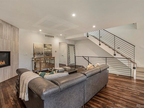 Stylish turn-key townhome with rooftop deck, mountain views, and thoughtful floor plan! This spacious 4BR/2.5BA home is full of natural light and high-end features including quartz countertops, stainless steel appliances, gas fireplace, and recessed can lighting. Main second floor features open concept living area and kitchen with a deck directly off the kitchen so you can grill out with convenience! Second floor also has half bath and one bedroom - great for your home office, fitness, or guest space! Continue upstairs where you’ll find the primary suite with 5-piece bath, and two additional bedrooms and hall bath. Enjoy outdoor living with the views from your beautiful rooftop deck on the fourth floor, and don’t miss the tiled entryway with attached oversized garage and adjacent storage/workshop. This property is low maintenance and move-in ready with refinished hardwood floors, and new paint and carpet throughout. Easy access to the light rail and 6th Avenue just a few blocks away. Refined contemporary living without the Sloan's Lake or Highlands price tag! Plus low HOA!