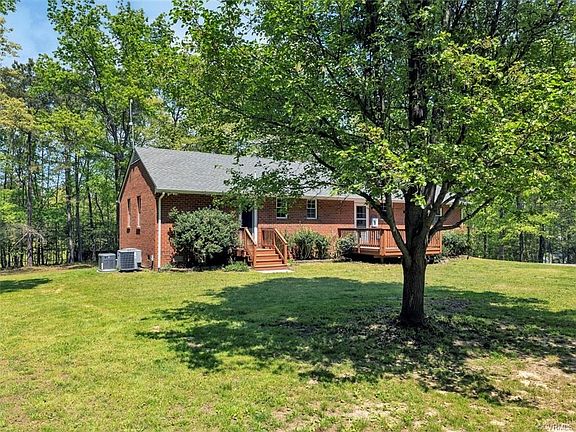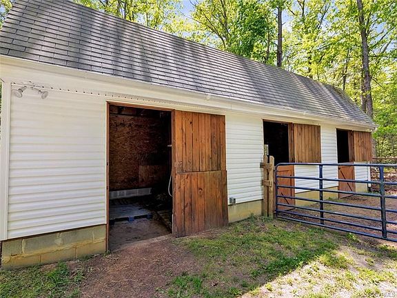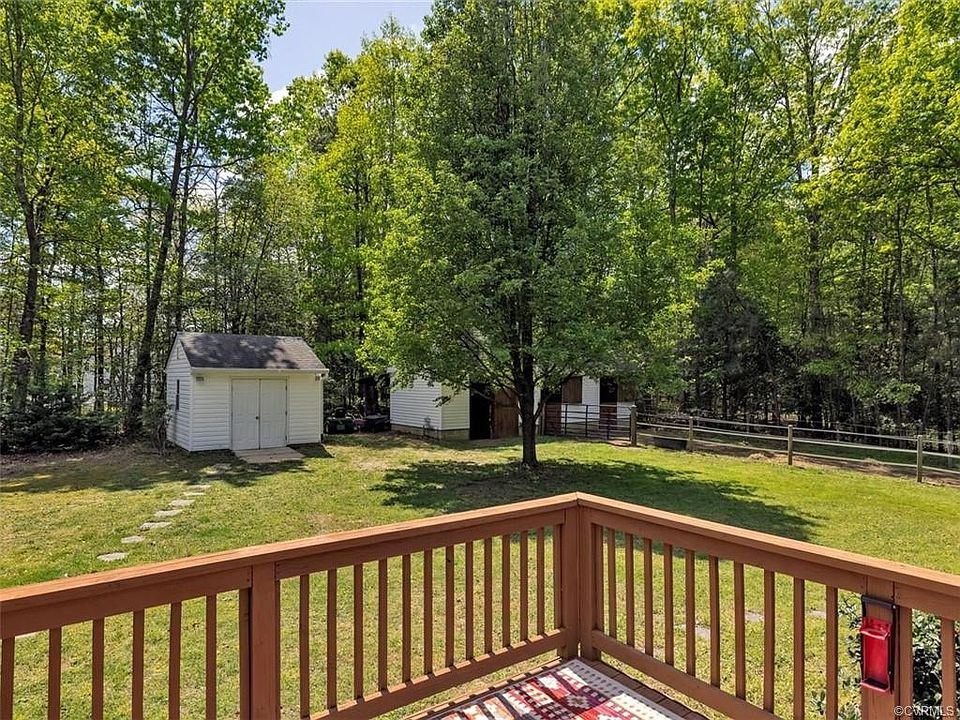 GORGEOUS 5 ACRE LOT RANCH-STYLE FARMHOUSE IN HENRICO! Enjoy country living at its finest with this stellar property featuring 3 BR, 2 BA, hardwood floors throughout and an incredibly peaceful ambiance. This lot provides plenty of room to roam w/over 3 acres to utilize for horses or livestock, 3 stable barn, detached shed for additional storage and too much more! Home is situated away from road for ultimate privacy. Enjoy a charming full front porch with plenty of space to sit and appreciate the great outdoors. Welcome inside a warm foyer opening t expansive family room offering gleaming hardwood floors and a cozy wood-burning fireplace w/brick surround. Making sure you're never too far away from the action, dining room opens up seamlessly to kitchen and family room. SS appliances, tile floors, pantry & bar-seating adorn this darling kitchen layout. Just around the corner, laundry/utility room features tile floors and access to the incredibly spacious deck. Retreat to a primary suite fit for royalty w/HDWD, walk-in closet, private access to porch and en suite w/walk-in shower and vanity. Additional 2 BR's each provide HDWD flooring, double door closets and shared hall BA.