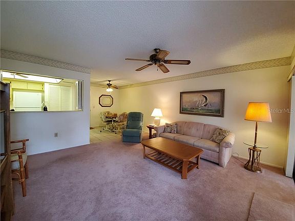 Well-maintained, furnished condo with newer contemporary furnishings. The guest bedroom and the living room both have sofabeds. The 2-BR/2-BA condo has an attached garage for your convenience, especially when it rains. You'll also appreciate the extra storage space it provides. The Florida room has three walls of windows so you can enjoy the breezes and the birds & wildlife that may wander by. Catering to the over-55 crowd, Timber Oaks offers a variety of festivities: dances, potlucks---a month-long schedule of other activities planned just for you. Move in and enjoy life where the monthly maintenance fee of $315 includes: exterior paint, roof, lawn, exterior pest service, water, sewer, trash & basic cable. HOA fee covers two pools, the large one is heated, and there's a hot tub, fitness center, library, and auditorium, along with sewing, billiard, computer, & card rooms, tennis, shuffle board & bocce courts. A rare perk that you'll find in only Timber Oaks is the weekly bus service for residents who may no longer drive to places such as Publix and Walmart. Such an active lifestyle! All of this at an affordable price, minutes from world famous beaches, the Gulf of Mexico, & less than an hour from TPA. See it, buy it, and move right in.