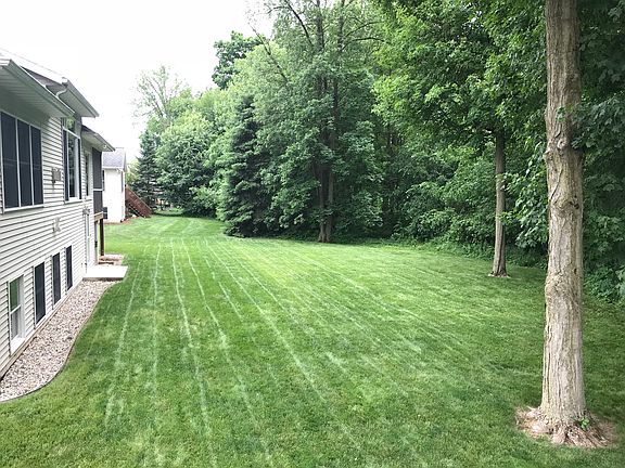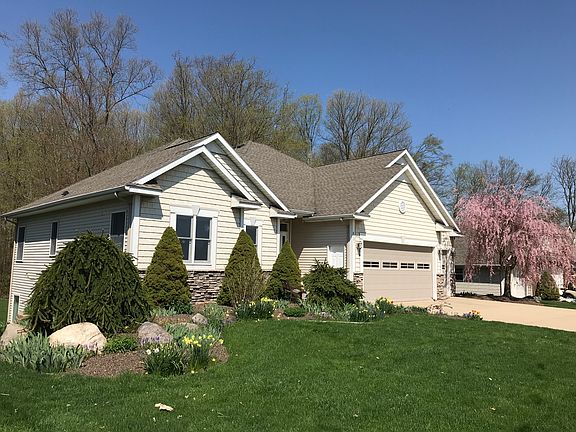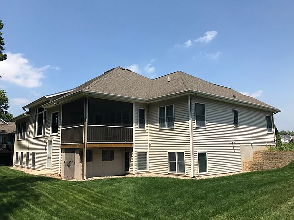 Spacious 5 bedrooms, 3-1/2 bath ranch home with 3,300 square feet of finished living space.The main floor has 9 foot ceilings throughout and an open living, kitchen and dining area. The living room features an 11 foot vaulted ceiling with gas fireplace.The daylight basement has a convenient access door to the rear yard from the stairway.Large 3 stall garage with utility sink. Other features include a large 30' x 20' rec-room in the basement ideal for entertaining, master suite with Jacuzzi tub,and main floor utility room with sink. There is a huge storage area in the basement with ample built-in storage shelves and a workshop with sink. Quality construction includes Anderson windows, central air, zoned heating and CAT-5 & co-axial cable wiring to most rooms. The landscaping includes underground irrigation, stone maintenance strip, and many perennials. There is a screened in deck with a storage shed below.The lot abuts a large platted private park which offers peace and privacy.