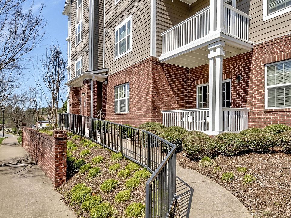 BRAND NEW HVAC w/ 10 year warranty installed 8/6/24. Pristine garden-level condo with a brick facade surrounded by lush landscaping maintained by the HOA. Access the front door from the sidewalks via ramp or steps. Tree lined, open street parking + one designated spot behind the unit. True single-level living with an open floor plan, 9' ceilings, brand new LVP flooring, and natural light. Covered patio with beautiful hillside views off of the living room. Both bedrooms include spacious walk-in closets with built in storage and expansive bathrooms. This desirable neighborhood features sidewalks lined with pet stations, a pavilion, grills, and access to the Mill Creek greenway. Refrigerator, washer, & dryer included.