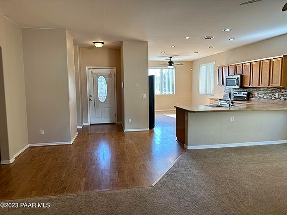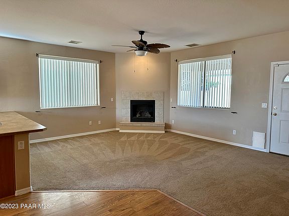 Motivated Seller!! Don't pass up this opportunity in beautiful Prescott Valley AZ!! Wide open skies and a sense of country living, while you have the convenience of shopping, groceries, hospitals, entertainment and more!! This home boasts an open floor plan with comfortable and convenient floor plan. Plenty of natural light and yet completely private. The Primary suite is large and comfortable with a large walk-in closet and a spacious bathroom with a built-in shower with a bench.The outdoor living space is perfect for cool summer/fall evenings and perfectly finished landscaping. The covered patio has lighting, power, and ceiling fans perfect for entertaining! Save on bills with the Solar system installed!!