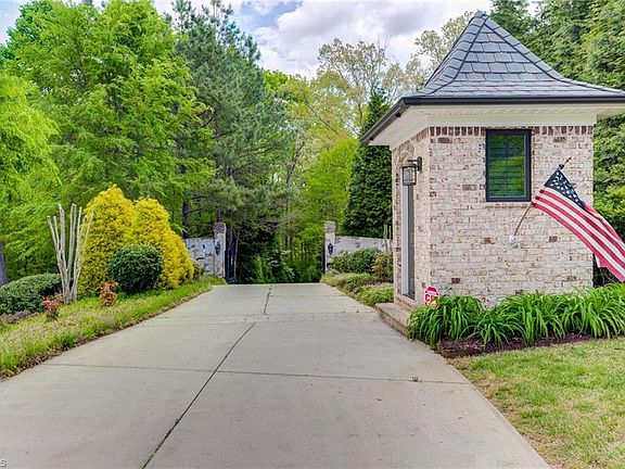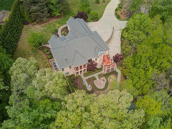 Stunning, elegant & gated is this 3.7ac private estate! Enter home through solid European wrought iron doors to sophisticated foyer w/gold leaf barrel ceiling. Open design; exquisite details; exceptional millwork: beamed ceilings, double/ triple tray ceilings, custom painting. Gourmet kitchen with high end granite, copper sink, large island. Luxurious owner's suite! Super spacious w/massive bath; fireplace & private patio. Main level laundry w/sink & folding table. Oversized 5 car garage w/polished floors & workstation. Second level has cinema style home theater + game area. The finished basement has additional bedrooms/office/gym/flex areas. Unique wine cellar; Full Wet bar & Pub. Details extend to exterior: outdoor lighting, English style gardens, patio's; Guest house/private office w/ full bath, matured landscaping. Enjoy private gazebo nestled in the woods by the babbling creek. 4 zone HVAC, tankless Rinnai water heater, water softener, tons of storage, central vacuum and more