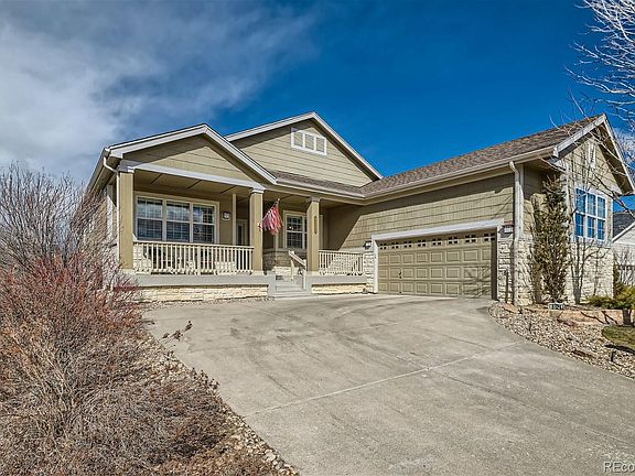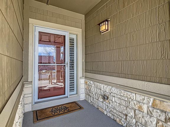 If you want to experience the most beautiful Colorado sunsets, then this is the home you’ve been dreaming of finding! The outdoor living space features a 2-level deck, the upper deck is completely covered, has sunshades, and a ceiling fan for summer comfort. The lower deck is covered with a pergola – both offer a wonderful sense of seclusion being located on open space followed by large acreage home sites. Offering incredible distant mountain views and beautiful sunsets. The open floor plan of the 702 model offers natural light streaming in through the windows. Many features have been updated including the stacked ledger stone fireplace with a beautiful custom wood mantel in the living room. The remodeled kitchen features slab and tile granite countertops, toffee finished Maplewood cabinets (42” uppers), under cabinet lighting, stainless steel appliances (refrigerator, dishwasher, and microwave were replaced in 2018), gas cooktop, and pendant lights above the counter bar. You will love the convenient wine bar with an under-counter beverage refrigerator neatly tucked into the kitchen dining area. The basement is 50% finished and features a large family room, guest bedroom, office with French doors and a closet – this could be a 4th bedroom, and a bath with shower. There is also a huge storage area with ample shelving. A new roof was installed in 2019 with impact resistant shingles. Installed in 2018 were a new high-efficiency furnace, Central AC, and 50-gallon water heater. There is also a whole house attic fan that helps take the load off the AC system. The oversized garage has room for a golf cart. A new garage door opener was installed in 2020. Heritage Eagle Bend is a wonderful active adult community, come and enjoy the newly remodeled 30,000 sq ft clubhouse with Eagles Nest restaurant and bar, meeting rooms, ballroom, billiards, modern work out facilities, indoor and outdoor pools, bocce ball, pickle ball, tennis and the award-winning golf course. Welcome Home!