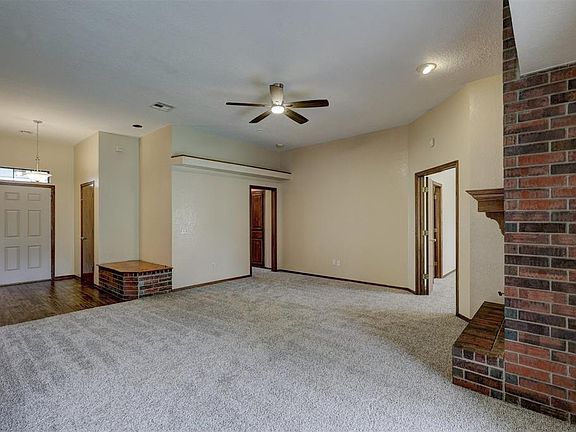 Terrific home in a charming Northwest Oklahoma City neighborhood with easy turnpike access. New carpet and flooring throughout the living, bedrooms, dining and kitchen areas. Updated lighting and fixtures, fresh paint, new blinds and move-in ready. Large living with that opens up as soon as you walk through the front door creates a spacious family space for gathering with friends. Large brick fireplace and open dining kitchen with large breakfast bar and lots of natural light provide a warm feel that is highlighted by the wood plank style tile floors. The master bath features separate his and hers walk-in closets, double vanities and soaker tub while the double door master bedroom has wall to wall windows and vaulted ceiling. Guest beds with ample closet space can be used flexibly for kids, home office or play rooms. Underground storm shelter provides peace of mind during Oklahoma weather and large yard with covered patio offers outdoor fun all summer long. Located less than a mile from the shopping and restaurants on Northwest Expressway as well as both the elementary and middle schools, plus two separate turnpike exits, this is an ideal spot for families, commuters or anyone looking for convenient access to all parts of the Oklahoma City metro.