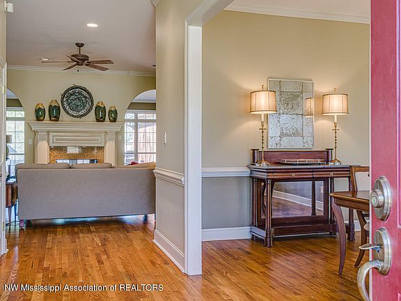 Stunning home in the sought after Belmor Lakes subdivision of Olive Branch MS. Located in the Lewisburg School district. 3 bedrooms and 2.5 baths located downstairs and upstairs you will find an additional bedroom, full bathroom, exceptionally large bonus room and an expandable space for a 5th bedroom and closet! Plantation shutters throughout the home, impressive large welcoming front porch and wood floors throughout much of the down stairs space. The home features a formal dining room, double sided gas fire place for the sun room and living room, large kitchen with professional level appliances (6 burner gas cook top, Sub Zero Refrigerator), large laundry room and a 2 car garage. The home had a new roof installed in 2020. This home has been very well maintained. All appliances remain.