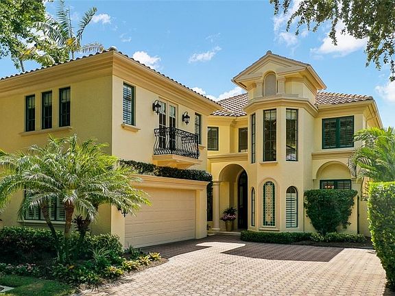 This private, exclusive enclave can only be accessed through a stately gatehouse, staffed 24 hours. This custom designed estate home, boasting 4972 sqft, features 4 spacious bedrooms and 4.5 baths. The minute you enter through the solid oak front door you are met with soaring ceilings & an abundance of warm natural light throughout. The flowing first floor features a great room and adjacent gourmet kitchen, complete with Mele appliances, a wine refrigerator, formal dining, master & guest suite. Relax at the end of the day in your serene master suite steps from the the saltwater pool. The beautiful staircase leads to the second level with 2 additional bedrooms, 2 full baths, a sitting area and spectacular balcony overlooking the pool and estuary. The patio is the perfect place to entertain, enjoy the spectacular sunsets. Bay Colony Beach Club offers indoor & poolside dining w/ tiki bar & lounge chairs, beach umbrellas, towel & food & beverage service Gulf front. Residents also enjoy a private gated access to the Ritz Carlton Beach Resort. The on-site Tennis Club provides 6 Har-Tru courts w/ Pro Shop & terrace. Bay Colony Golf Club & Pelican Isle Yacht Club memberships available.