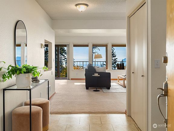 Stunning Puget Sound, Olympic Mtn, and Whidbey Island views from this spacious condo in highly sought after View Point, a gated community. This beautifully maintained two story end unit takes full advantage of the views with a wall of West facing windows and fabulous view deck. Sunsets will never be missed! The light-filled main level features a generous kitchen that is open to the equally generous living and dining rooms + a ¾ bath. Downstairs you’ll find a primary bed + ensuite bath, 2 additional bedrooms, a full bath, and separate laundry rm. There is an attached 1-car garage w/ extra storage room. View Point offers a Clubhouse, outdoor swimming pool, sports court, 2 view gazebos w/walking trails & RV parking w/electrical outlets.
