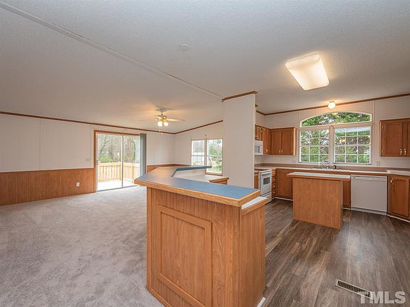IMPROVED PRICE - Triple-wide w/24.5x20 detached wired metal garage/workshop w/concrete slab! Perfect for project enthusiasts! Private lot just over 1.5 acres. 3 BR open floor plan with sep living/family rooms, open kitchen, and sep dining room. MBR suite w/WIC, garden tub, dual vanity, & sep shower. Sep laundry room, sun room, & covered porch. New flooring, recently replaced roofing, recent appliances. These units don't come on the market often, come check it out! More info in agent remarks.