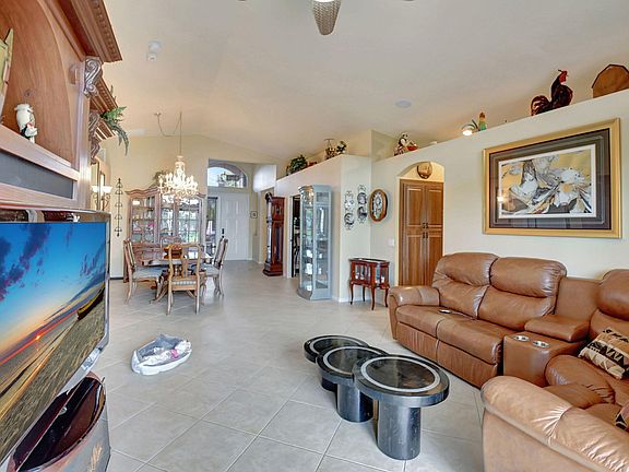 THIS HOUSE IS EQUIPED WITH A FULL HOUSE GENERATOR. Embrace the tranquility as you step onto the extended 28 x 16 covered/screened-in patio, enveloped by breathtaking lake views and lush tropical landscaping. The spacious patio provides an idyllic setting for entertaining loved ones. Nestled in seclusion with neighbors on just one side, relish in the peace and quiet of your surroundings.Accessibility meets elegance in this home, thoughtfully crafted for convenience. With 18 x 18 tiles on a diagonal layout throughout, bid farewell to the hassle of carpet maintenance. The master bathroom epitomizes luxury and functionality, boasting a spacious roll-in shower adorned with exquisite tile work, a tumble stone show HOA includes Cable, telephone, security package, landscaping, sprinklers, common grounds