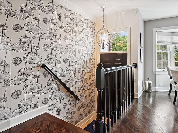 This townhome is a showcase of elegant design and attention to detail. From the moment you step inside, you're greeted by a stunning entrance featuring a circular staircase and Cole and Son Wallpaper. The heart of this home is the beautifully appointed kitchen, a culinary haven, adorned with Schonbek Crystal Pendants, which not only provide practical illumination but also serve as eye-catching design element. The cabinets are semi-custom and include glass panels and a built-in wine rack. In the adjacent dining room, the ambiance is enhanced by a Schonbek Rock Crystal Chandelier and Ralph Lauren grass cloth wall covering which creates a warm and inviting atmosphere. The living room features two large arches and a gas burning fireplace. Large windows and Pella French Doors lead to the oversized deck that fills the room with natural light. A Visual Comfort crystal fixture and a Newport Brass faucet in the powder room continues the theme of elegance and refinement. The primary suite features Vahallan wallpaper, setting a tranquil and sophisticated backdrop to the retreat. For the utmost convenience and organization, there are two custom-built walk-in closets, offering ample space for your wardrobe and accessories. The primary bathroom includes a custom stained glass window, dual sinks, separate soaking tub, and CEFIAL bathroom faucets and rain shower head. The lower level boasts a family room with a wood burning fireplace, a full bathroom, and Pella French Doors that lead to the patio and fully fenced backyard. Throughout this home, the attention to detail is evident, making it a true masterpiece of design and craftsmanship. Every element has been carefully chosen to create a harmonious and luxurious living environment. Come see for yourself.