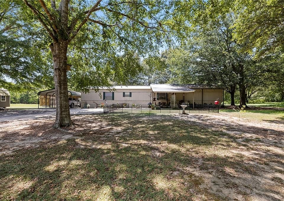 Welcome to this charming property nestled on 1.5 acres of tranquil land. As you drive up the road, you'll immediately appreciate the seclusion & privacy this property provides, making it an ideal retreat from the hustle & bustle of city life. The highlight of this peaceful estate is its well-maintained grounds. Outside has many features: Horse barn is a true gem for horse lovers, with 2 stalls & tack room, also has large fenced in area for animals, whole home Generac generator, metal roof 5 years old, new well pump, new skirting, deck/patio, 2 storage sheds, covered parking, lush greenery & mature trees.