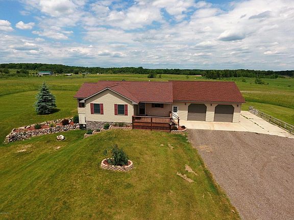 Amazing views from this 3-4 bed 3 bath home, just a short drive to Big Rapids. Spacious ranch home on a full walkout basement, built on a hill overlooking a gorgeous pond and spacious yard. Attached 2+ car garage with concrete approach. Updates throughout, with a generous sized master bedroom suite and large laundry room. Basement could add a 4th bedroom, and includes a wet bar and rec/entertainment area. A must-see home, come take a look before it is gone!