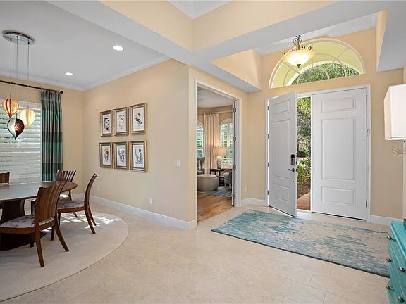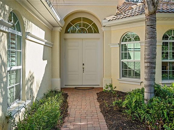 Bestowed with captivating beauty and supreme privacy, this Country Club masterpiece presents a singular kind of comfort, luxury, space and quiet tranquility. Tucked away in Kenwood Park within University Park Country Club, the superbly sited residence overlooks coveted eastern lake and golf course views with artfully mature landscaping. A rare find for the neighborhood, the newer home was built in 2014 and thoughtfully planned to maximize views and the captivating Florida lifestyle. Inside, you're welcomed with towering ceilings and a beautifully lit open space that gives the property its enchanting character. From the spacious dining room, impeccable molding and designer lighting create an extra touch of class. The chef's kitchen is an extraordinary centerpiece with its wood cabinetry, granite-topped counters and prep island, glass tile backsplash and vent hood, six-burner gas range, and more. A casual breakfast café is framed by pool views. The library is accented with detailed built-ins and a bay wall of windows. The richly-appointed master suite features double tray ceilings and a spa-like master bath. Items of note include Hunter Douglas electric UV shades, impact windows and doors, window treatments, and alarm system. Your own private Floridian playground is complete with a stunning infinity-edge pool, and built-in summer kitchen. UPCC offers championship golf, Har-Tru tennis courts, fitness center, and is all close to the new University Town Center and Nathan Benderson Park.
