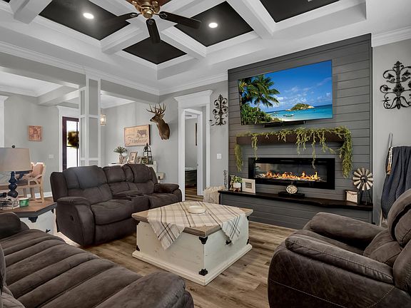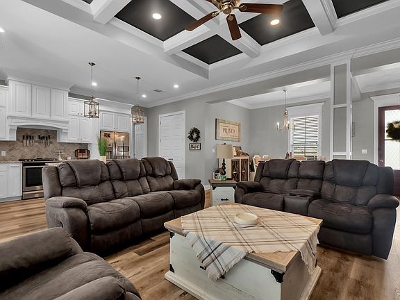 This Beautifully well maintained 3 bedroom/ 2 bath home located in Settlers Trace Subdivision must be seen to be believed. This custom home offers an open floor plan and the kitchen includes a large island as well as a walk in pantry with window and countertop. The Primary Suite has vaulted ceilings and the bathroom has a tile walk-in shower and a separate soaking tub. The Property is located in flood zone X. HOA fees are only $200 a year. Outside has a spacious back yard and concrete covered patio area. Newly added fenced in backyard and a beautiful featured fireplace.