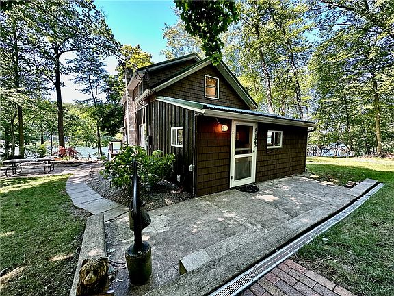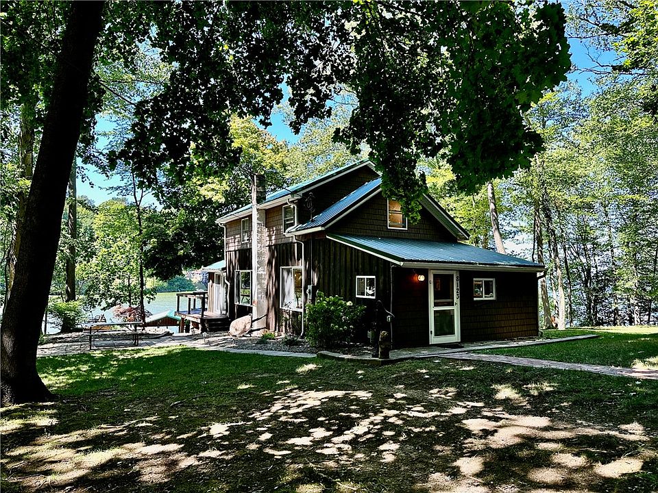 Welcome home to 8123 Robin Rd! This secluded waterfront property is located on sought after Port Bay with over 100 ft of frontage! This home has has a rustic post and beam styling with lots of windows, excellent bones AND she's connected to Public Water AND SEWER!! She sleeps 10 easily with 2 large bedrooms and a sleeping loft plus pullout sofas. Many upgrades include metal roof 2017, insulation, Siding, Trex deck 2020, Pex plumbing 2017, New footers and supports, Walkout basement, Hot Water On Demand and many more! The large wooded lot is located at the end of Private Rd with level year round access, and plenty of space for parking. Water depth is no issue with permanent dock, and permanent covered boat hoist (new motor and cables 2020). **DELAYED SHOWINGS START THURSDAY AUGUST 10TH. DELAYED NEGOTIATIONS START WEDNESDAY AUGUST 16TH NOON.**