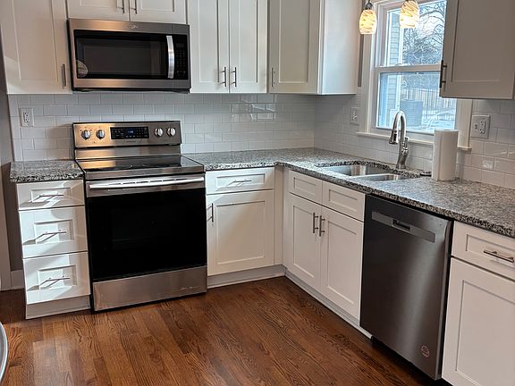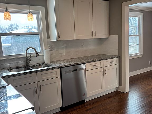 Fully updated and ready to go, this two bedroom one bath home is in a prime location across from Thompson park in downtown Overland Park. Walk to the farmers market, dining and nightlife. Granite counter tops and stainless steel appliances in the kitchen, hardwood flooring throughout, garage area has been converted into additional living space. Recently remodeled bathroom. Fresh paint throughout. Renter is responsible for all utilities and lawn maintenance.