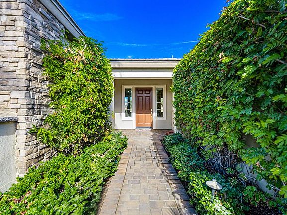 Experience luxury living at its finest with this stunning Monarch plan featuring a Tuscan-inspired facade, perfectly situated on the #9 fairway of The Golf Club at La Quinta. Revel in breathtaking golf course, mountain, and sparkling pool views from this single-story retreat offering 10-foot ceilings, 3 bedrooms, 2 baths, and 1,845 sq. ft. of exquisite living space. Enter through a charming wrought-iron gate to discover a great room adorned with a tile-encased fireplace, media niche, and expansive picture windows that frame the backyard oasis. The upgraded kitchen is a chef's dream, boasting stainless steel appliances, double ovens, a gas cooktop, slab granite counters, a prep island, and a stylish breakfast bar. The primary suite is a tranquil haven, featuring a bay window, French door to the patio, and a spa-like en suite with travertine finishes, dual vanities, tiled shower enclosure and a spacious walk-in closet. Designed for entertaining, the backyard showcases an extended paver deck, a built-in BBQ station, a Pebble Tec spa with cascading water features (with boulder/flagstone accents), and a free-form pool, all surrounded by lush landscaping and a cozy fire pit for cool evenings. Nestled on an expansive lot just shy of 8,000 sq. ft., this remarkable home offers a rare blend of elegance and resort-style living in the prestigious Trilogy La Quinta resort community. Don't miss your chance to make it yours!
