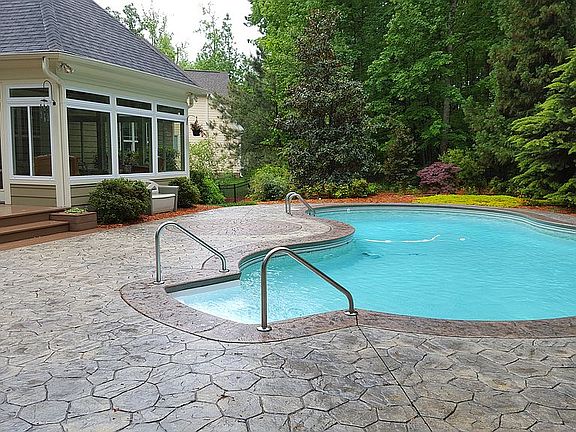MUST SEE! Stunning custom home on 1/2 acre, end of culdesac w/ inground salt system pool; 5br+media rm+4.5 baths. 1st flr master, 1st flr guest ste, 2nd flr master w/ sitting area & 3 WIC. Heavy trims thruout, tons of upgrades! Open flr plan, spa-like master bath, California closet, gourmet kitchen w/ double oven with new granite, butler's pantry, coffered ceiling, stone surround fireplace, sunrm, fully fenced private yard, oversized garage w/ shoe closet built ins, det shed w/ electric, inground saltwater pool, theater room, New roof, HVAC, water heater 2020, new BOAT PARKING PAD, walk to schools & park, Cary city limit.