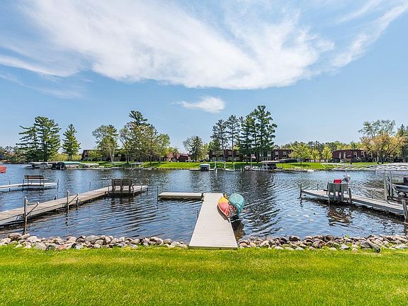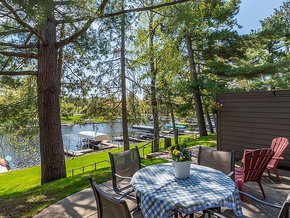 Soak in stunning lake views and access to the Gull Chain from your private patio and dock. This 3-bedroom, 3-bathroom townhome boasts a wood burning fireplace, lake-view dining, and an attached garage. Enjoy nearby restaurants, hit the golf course, or relax by the pool and tennis court!