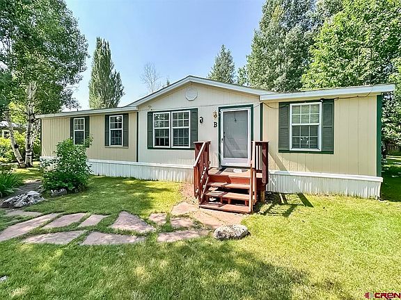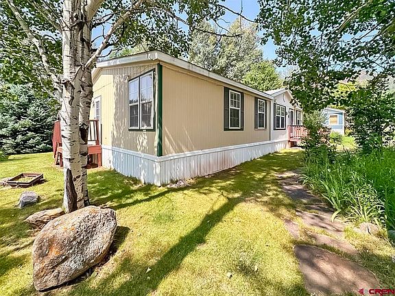 Discover this charming double-wide mobile home in the highly sought-after Animas Valley, nestled amidst lush vegetation, aspen trees, and pines. Built in 1998, this home offers a large open floor plan with 3 spacious bedrooms, each featuring walk-in closets. The kitchen provides ample counter space for meal prep, making it move-in ready for its new owner. Located in a well-maintained park with extra parking for trailers and RVs, it's perfect for those who love to travel or play. Two sheds offer plenty of storage, and a back privacy fence adds seclusion to the beautiful outdoor space. With lot rent at just $700 per month, including water and sewer, this is the best value in the county for nearly 1,296 sq ft of single-level living. This is a rare opportunity to own a beautiful home in a desirable location at an unbeatable price. Please note, no dogs allowed.