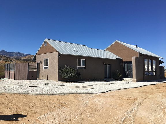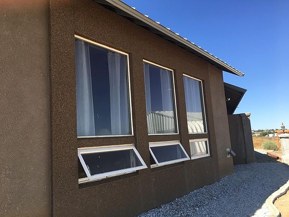 Amazing Passive Solar Home. Rastra ICF Construction.12inch,Thick Reinforced Insulated Concrete Foam Block Exterior Walls.Custom Built, 3025 SQ.FT.4Bdr.2Bath w/Den(has closet for possible 5th Bdr).Mtn Views to the South,City Lights views to the North.Large Dual Pane glazed windows on North and South sides for natural light and air flow.Metal roof w/ extended eaves on So. side to block the summer sun.Skylights thru out that open for Natural light and air flow.Pellet Stove in Living room. Heated floors in Living room Bedrooms and baths. Ceiling fans in all rooms and Whole house fan for additional cooling. Cooks kitchen w/ custom cabinets,Granite counters, Island w/sink and raised D/W for easy loading and unloading.Walk in pantry. Space for large commercial fridge.Large So.facing window w/great views.Formal Dining Room w/Ceiling fan and large windows for natural light and air flow.Kitchen and Dining Room floors are Tile. All other floors are stained concrete .Living room has Pellet stove,ceiling fans,skylights and evaporative cooler. Large main bedroom w/Ensuite bath w/Jacuzzi tub and 5X7 walk in shower w/4 heads,4 body sprays and steam shower. 3 large guest rooms and an office.Large hall bath with walk in shower,4x5.1500 Sq.Ft. Metal garage w/3 skylights,2 12x14 Roll up doors,One elec,in front and 10X8 roll up in rear,220 Elec.House has fire sprinklers and alarm.Patio off kitchen w/outdoor kitchen. To many other extras to list.Fully fenced w/ elec gate.On approx 2 acres.